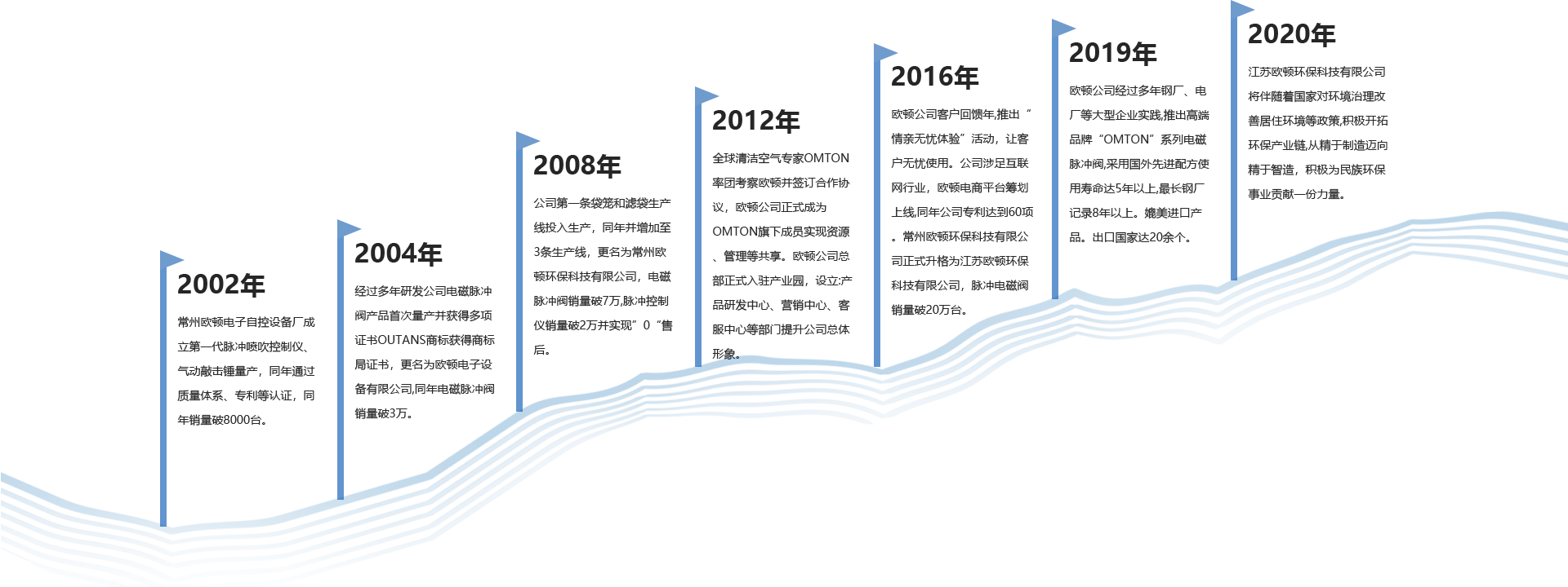 江蘇歐頓環(huán)保科技有限公司是一家專業(yè)從事袋式除塵器配件研發(fā)、生產(chǎn)、銷售和環(huán)保技術相關的企業(yè)。公司通過國家相關產(chǎn)品認證企業(yè)、質(zhì)量等認證企業(yè),公司擁有袋式除塵器技術研發(fā)中心、實驗中心、檢測中心等配套實施。我們以全球科技發(fā)展為導向,2014年通過與國外知名工業(yè)清潔空氣凈化專業(yè)企業(yè)進行合作,引進先進的空氣凈化技術和先進的產(chǎn)生、管理模式,投入大量資金對電磁脈沖閥膜片和除塵濾料產(chǎn)品進行研發(fā),并獲得顯著成果,使得歐頓產(chǎn)品在國內(nèi)市場占有一席之地,產(chǎn)品質(zhì)量媲美國外產(chǎn)品,使得歐頓公司在袋式除塵行業(yè)起到跨越性作用。我們的產(chǎn)品包括電磁脈沖閥、脈沖噴吹控制儀、除塵濾袋、除塵袋籠、除塵器專用氣缸、專用配件、電氣控制柜及過濾筒、氣動助流產(chǎn)品等。其袋式除塵產(chǎn)品廣泛應用于電力、冶金、建材、垃圾焚燒、化工等行業(yè)。在過去的數(shù)年里,公司的產(chǎn)品和服務得到了市場的認可及肯定,產(chǎn)品出口到數(shù)十個國家。
